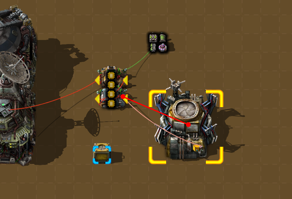 Anyway, the problem at hand is this. I want to import items from one planet to another planet. Not an endless supply, though. Just the right amount. We can achieve this by using combinators to read the current number of items in the logistics network on a specific surface (planet) and comparing that with values we set in a constant combinator. The delta between those two values is what we want to import.