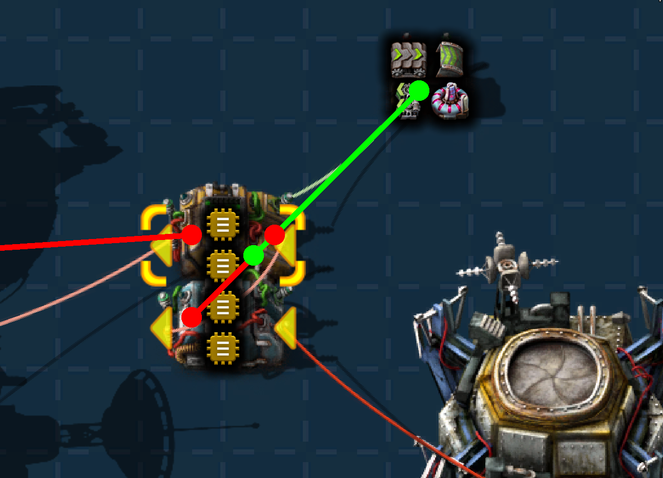 The last step to actually send these requests to space ships is to hook up the output from the Decider to the Cargo landing pad building and set Set requests.